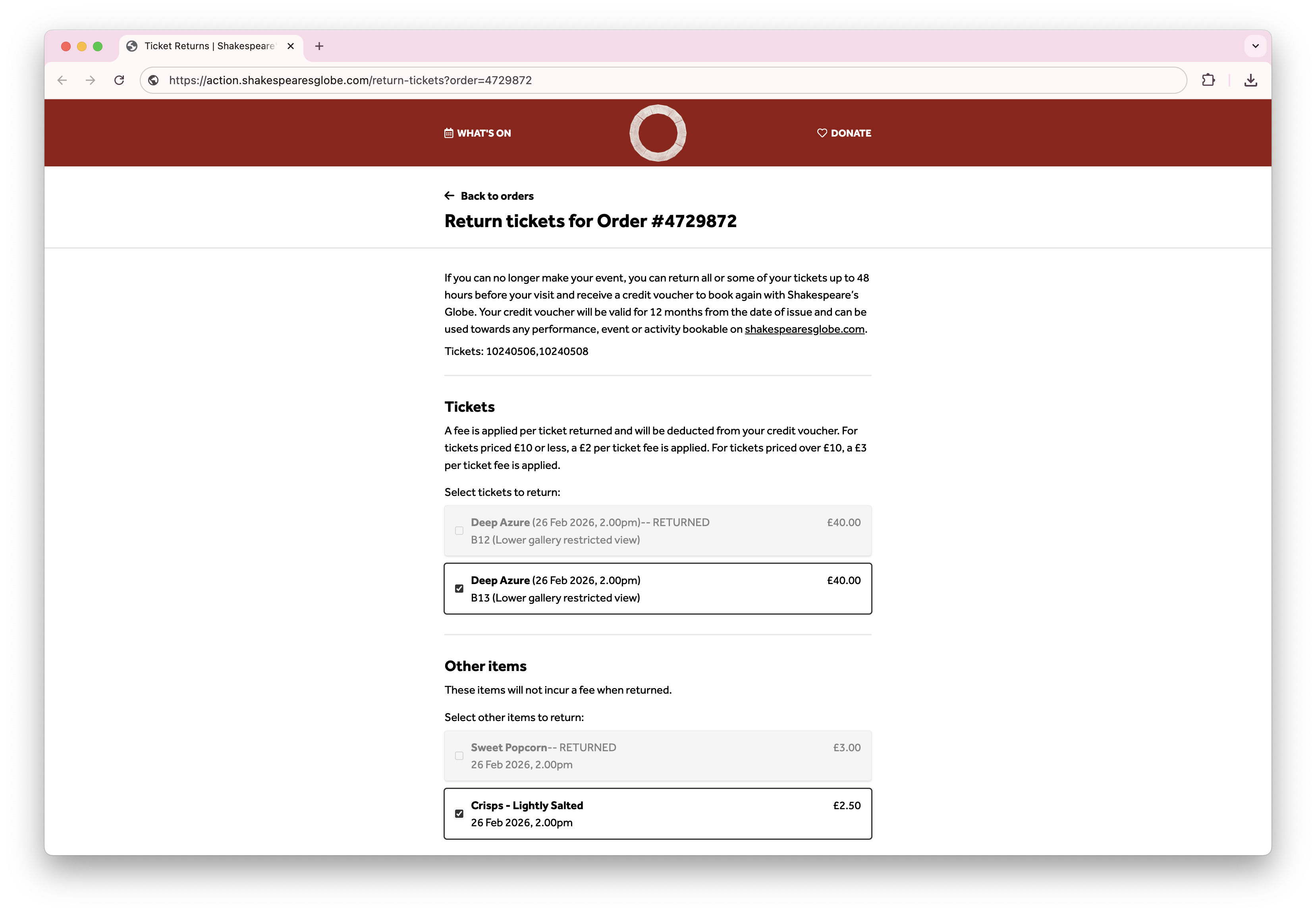 Ticket returns and exchanges are a key part of the visitor experience at the Globe, providing customers with ultimate flexibility and peace of mind. They're also an important way to retain income in the organisation by allowing the Globe to re-sell seats, rather than risking unofficial secondary market reselling.
