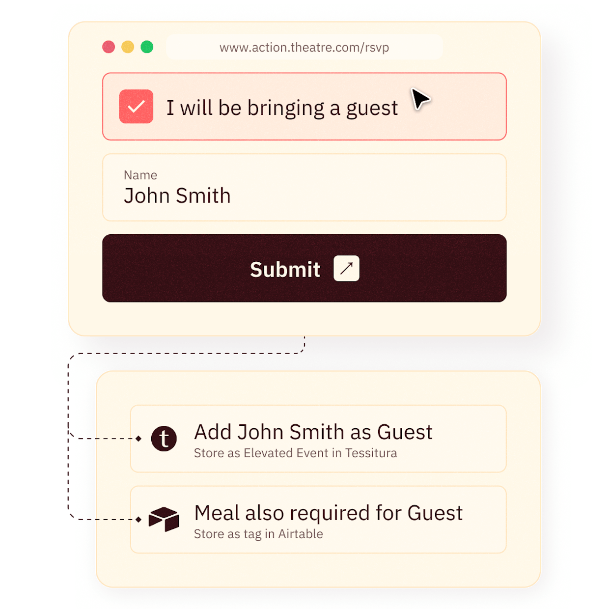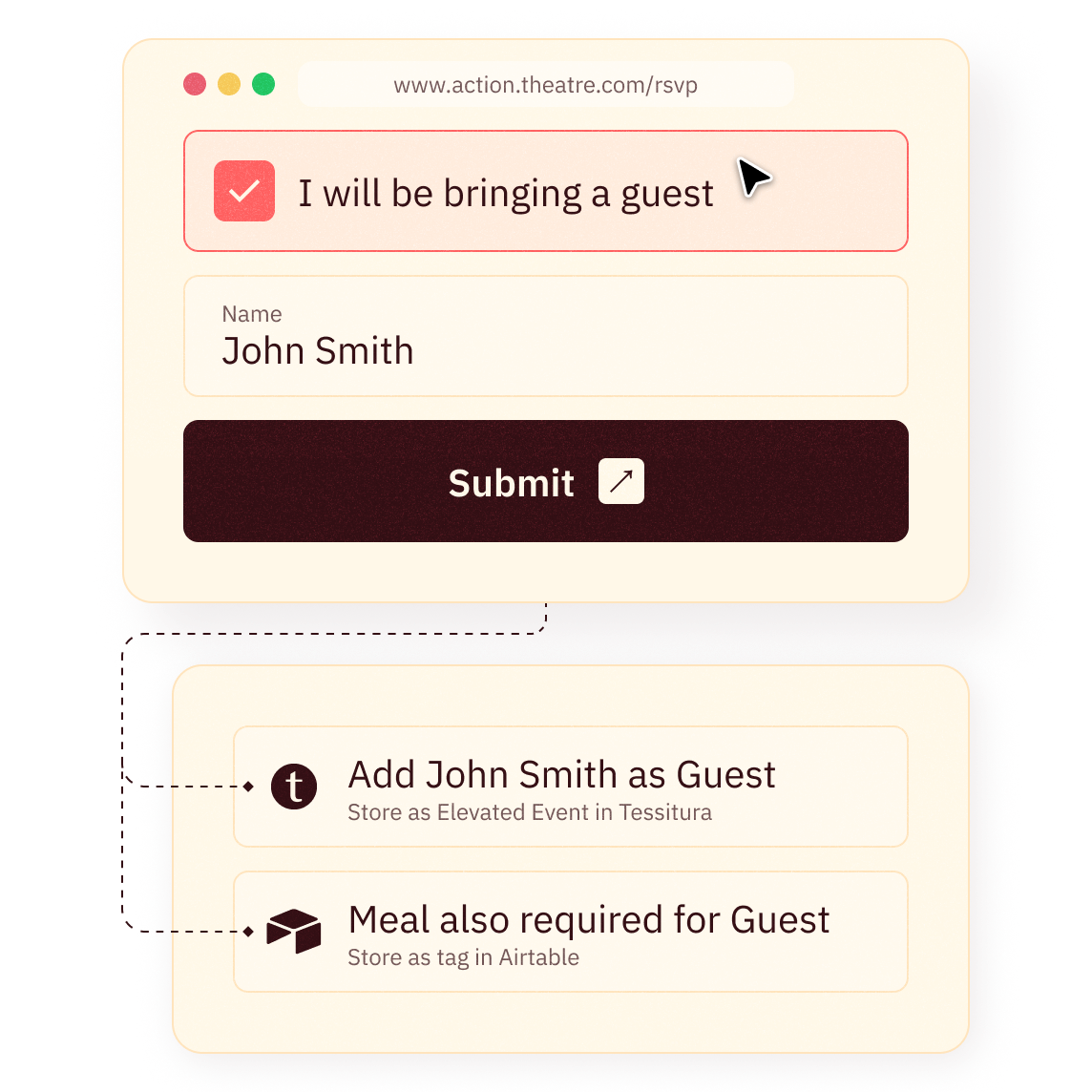 Look-up or fetch existing customer data from your ticketing system and use it to personalise forms. Stop collecting responses in spreadsheets and instead send them straight to your CRM, instantly updating order history, membership status, segmentation and so much more.
